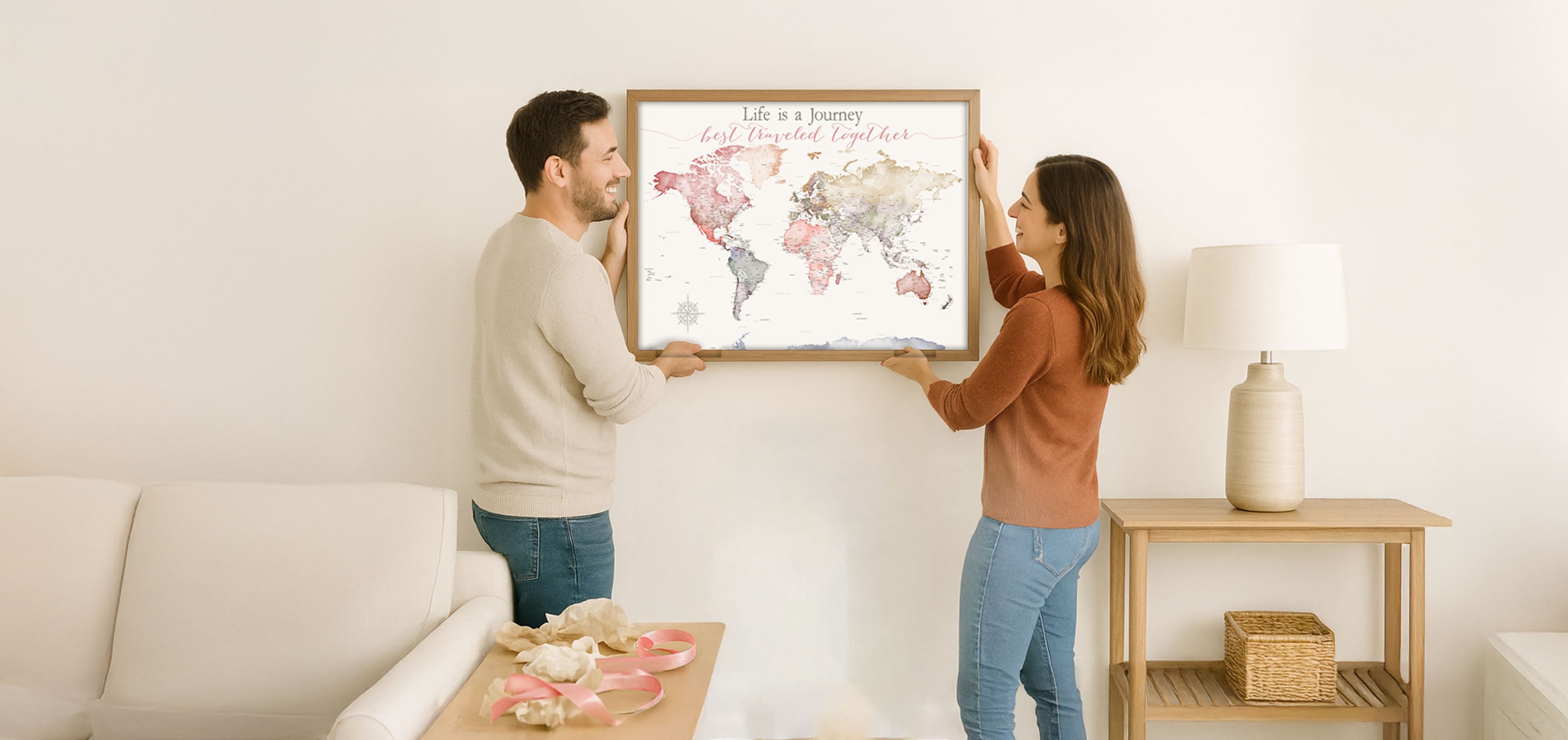 - A bespoke map key with family names or items you want marked in colorful pens, thread or map pins.