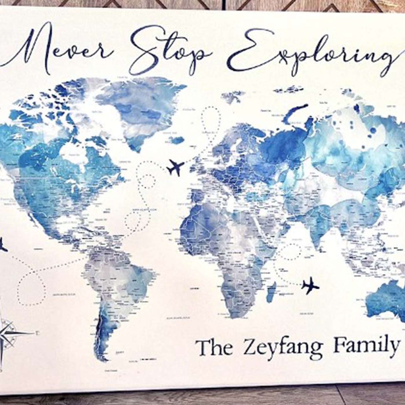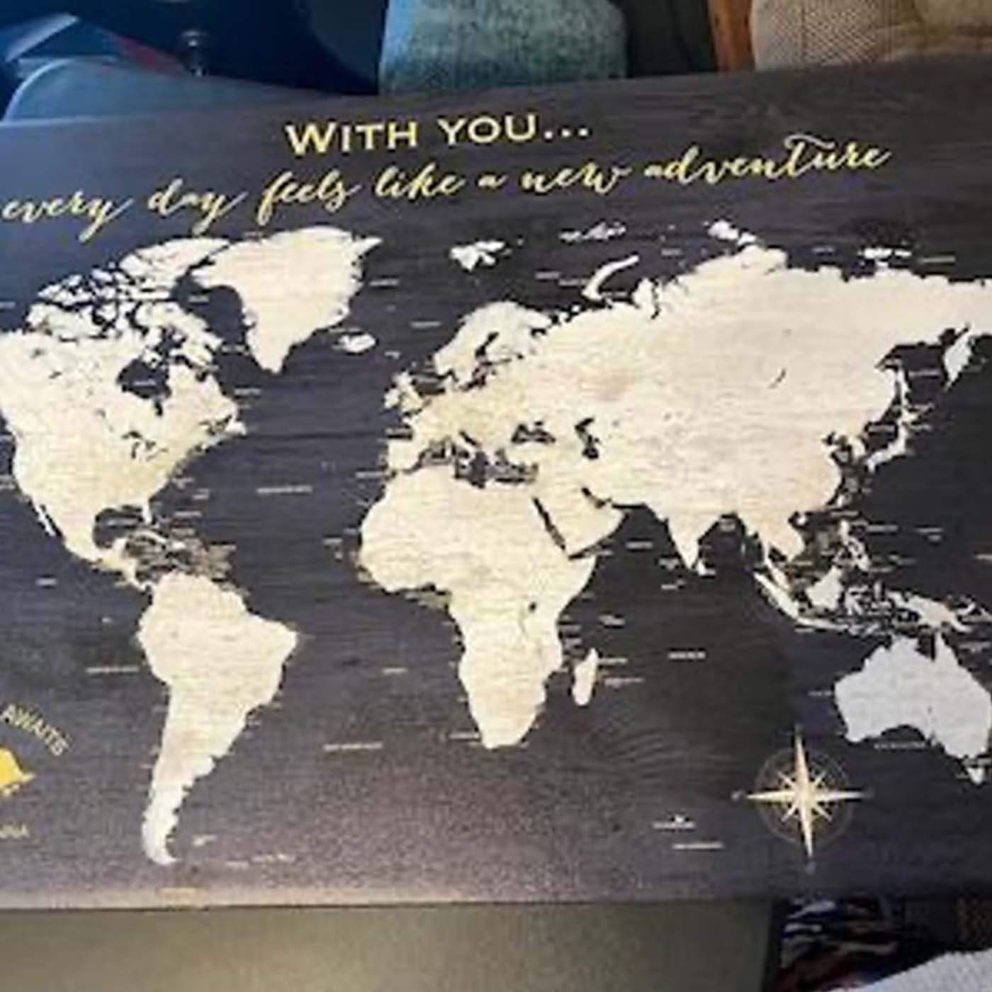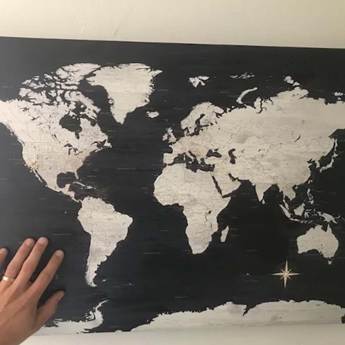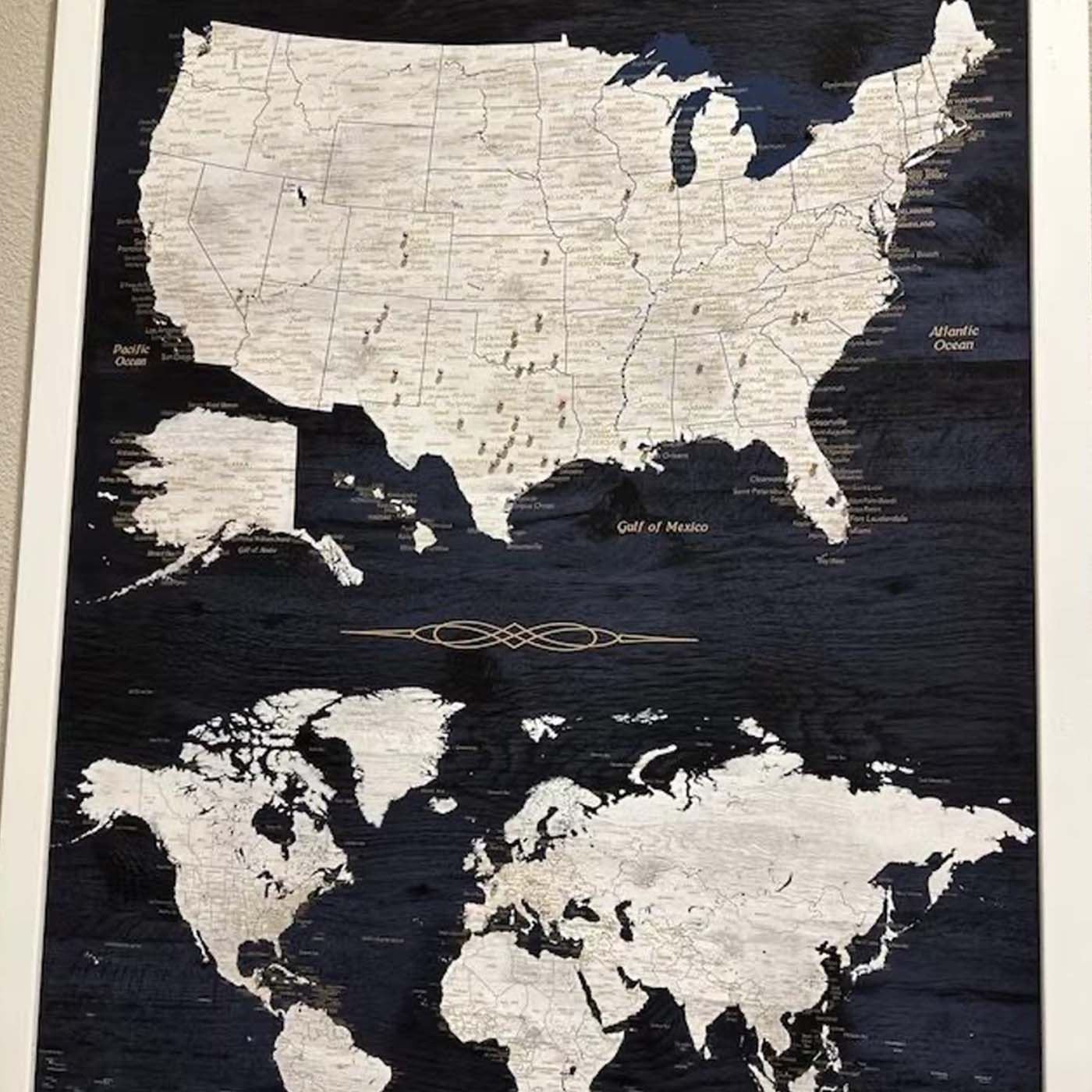 I bought this travel map for my son and wife for Christmas who love to travel. It is a beautiful piece and I am sure they are going to love it! I had a few questions before purchasing and the owner, Katrina, was an absolute pleasure to work with. She responds quickly to all questions and is quite pleasant!